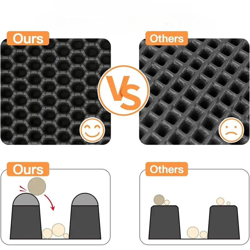 - Doppio strato: cattura la lettiera caduta e facilita la pulizia.
