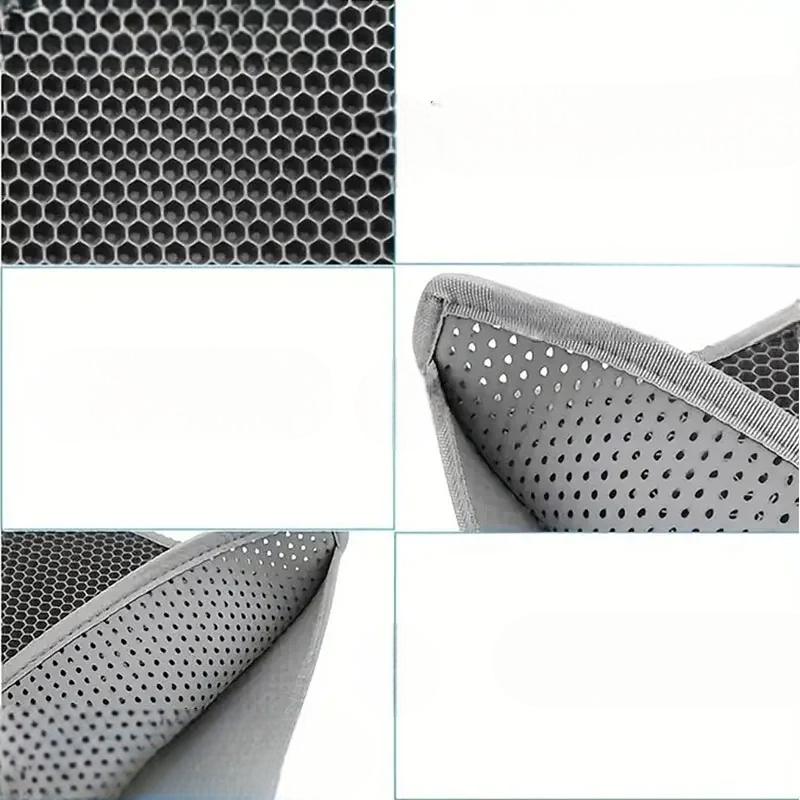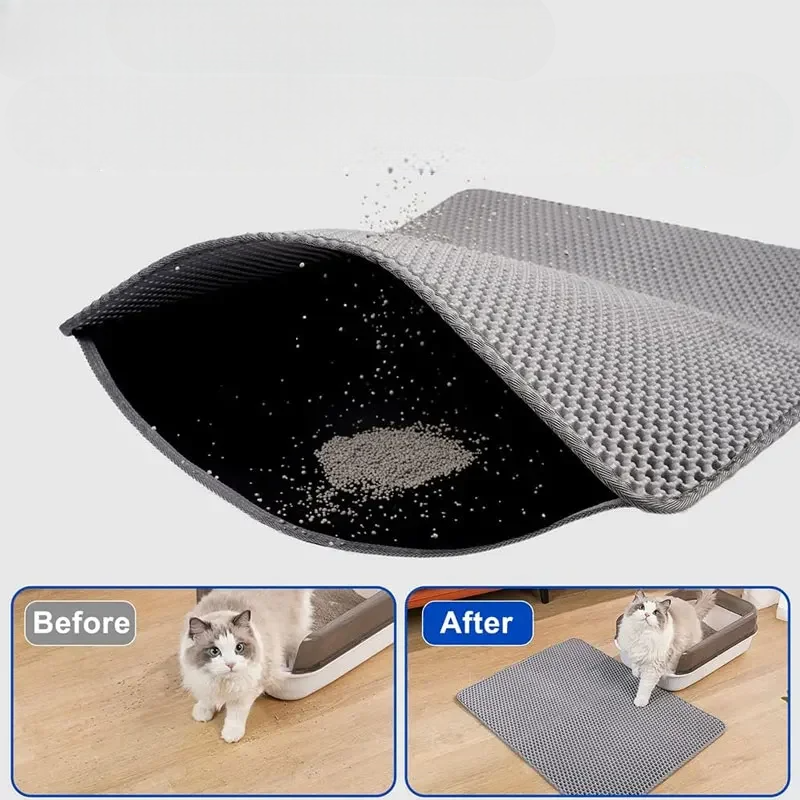 Mantieni pulita l’area del tuo gatto con questo tappeto per lettiera antiscivolo. Doppio strato, impermeabile e facile da pulire, perfetto per proteggere il pavimento.