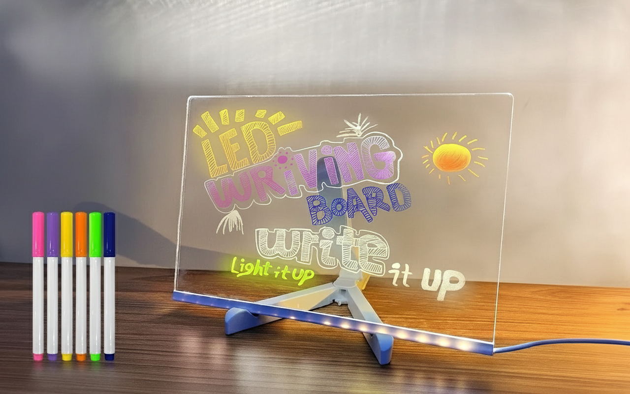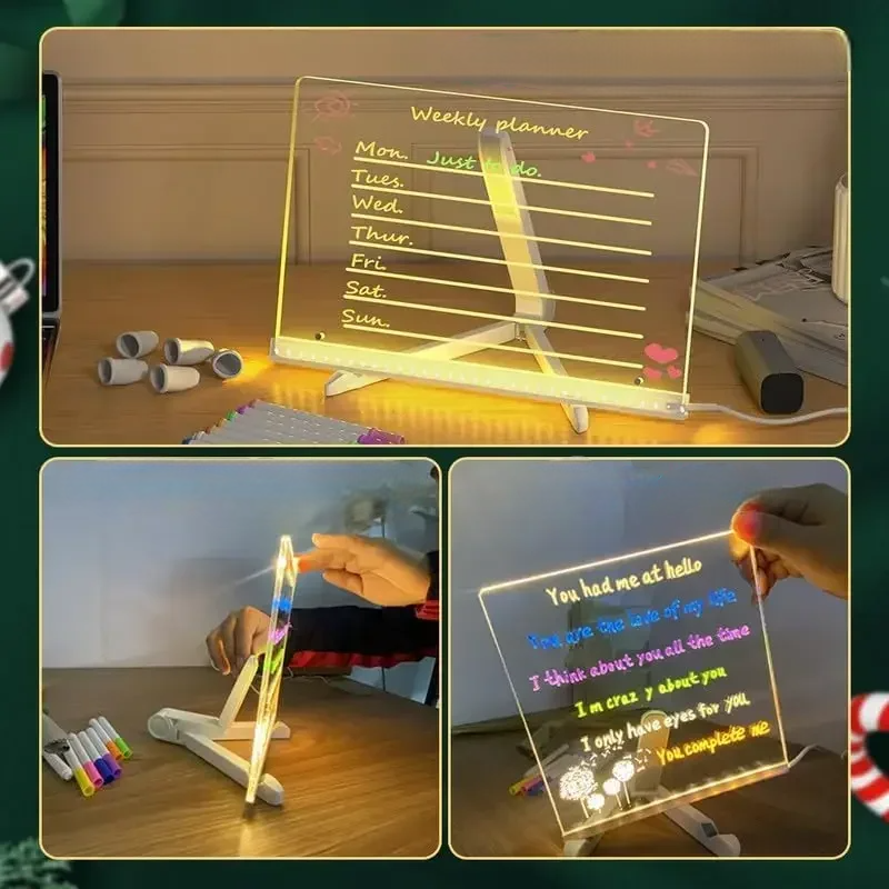 Stimola l’immaginazione e la creatività dei tuoi bambini con questa tavoletta luminosa LED in acrilico. Ideale per disegno, messaggi e lavoretti, offre una superficie riscrivibile che rende ogni creazione divertente e interattiva.